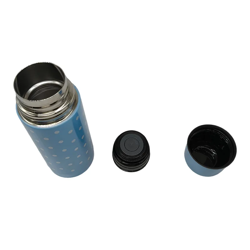 La borraccia in acciaio inossidabile Jianyang Fashion 304 ha uno stile a pois azzurro, che è molto fresco e accattivante, e c'è anche una serie in tinta unita tra cui scegliere. L'azienda è impegnata da 15 anni nella produzione di tazze e vasi, con un volume di spedizioni annuo di oltre 2 milioni di pezzi. I prodotti hanno superato le certificazioni internazionali FDA e LFGB e vengono esportati nei mercati di Europa, America e Sud-Est asiatico. La loro qualità e servizio hanno guadagnato la fiducia dei clienti globali.
